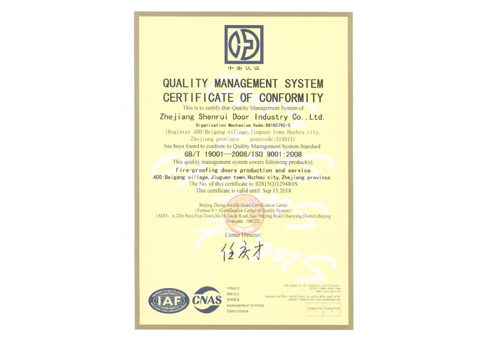 ISO認(rèn)證證書--申瑞門業(yè)